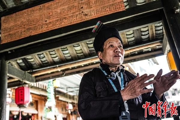 侗族木构建筑营造技艺的国家级代表性传承人杨似玉,香港回归时,广西壮族自治区人民政府向香港特别行政区赠送的“同心桥”模型就出自他手。中青报·中青网见习记者陈宇龙/摄